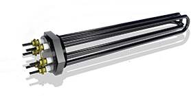 ):是采用U型管狀電熱元件,依據加熱不同介質設計規(guī)范,按照功率配置要求裝配在法蘭蓋上,插入需加熱物料中,發(fā)熱元件工作時所發(fā)出的大量熱量傳導給被加熱介質使介質溫度升高,達到所需的工藝要求。當介質溫度達到工藝要求的設定值時,控制系統(tǒng)根據溫度傳感器信號,經PID運算后調節(jié)